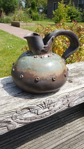 2020steengoed gebakken kan/kruik , waterdicht, kleur: bruin en groen