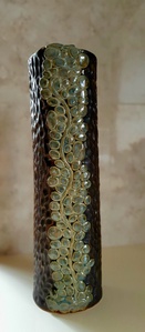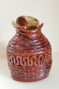 2023vaas bruin, geglazuurd, steengoed, handvorm van rolletjes klei