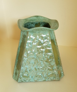 2024steengoed vaas , met hand opgebouwd in de kleuren groen/blauw/ turquoise, bruin