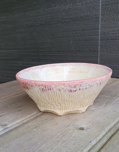 2024schaal keramiek gedraaid, steengoed, crème met roodtinten